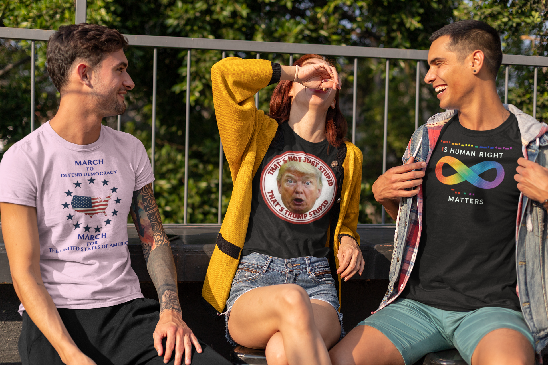 Welcome to the wild world of Politico Style, where we believe that wearing your heart (and your beliefs) on your sleeve is not just a fashion statement—it's a revolution! we’re all about premium quality T-shirts that pack a punch with messages that matter. Think of us as the lovechild of streetwear and social activism, minus the awkward family reunions.Our mission? To empower you to strut your stuff with slogans like 'Don't Divide USA' and 'Brilliant MAGA'—because who says you can’t look fabulous while making a statement? We’re a small but mighty team of free spirits, designers, and culture jammers (we like to think of ourselves as the Avengers of apparel, but with fewer capes and more cotton). We’re here to shake things up, one T-shirt at a time!At Politico Style, we don’t just throw words on fabric; we craft wearable art that challenges the status quo. We’re not afraid to ruffle a few feathers (or, you know, make a few fashion faux pas) in the name of freedom of expression. So, whether you’re marching in a protest or just grabbing coffee, our shirts are designed to make you feel like the rockstar of your own political movement.